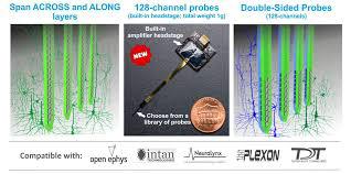 探针采用多电极阵列结构,电极以高密度网格排列,可在不同神经层之间进行高分辨率记录,实现单神经元放电(Spike)与局部场电位(LFP)信号的同步采集。部分型号提供双面电极设计(Double-Sided Probes),在相同脑区内显著增加记录神经元数量,从而提高实验数据产出效率。